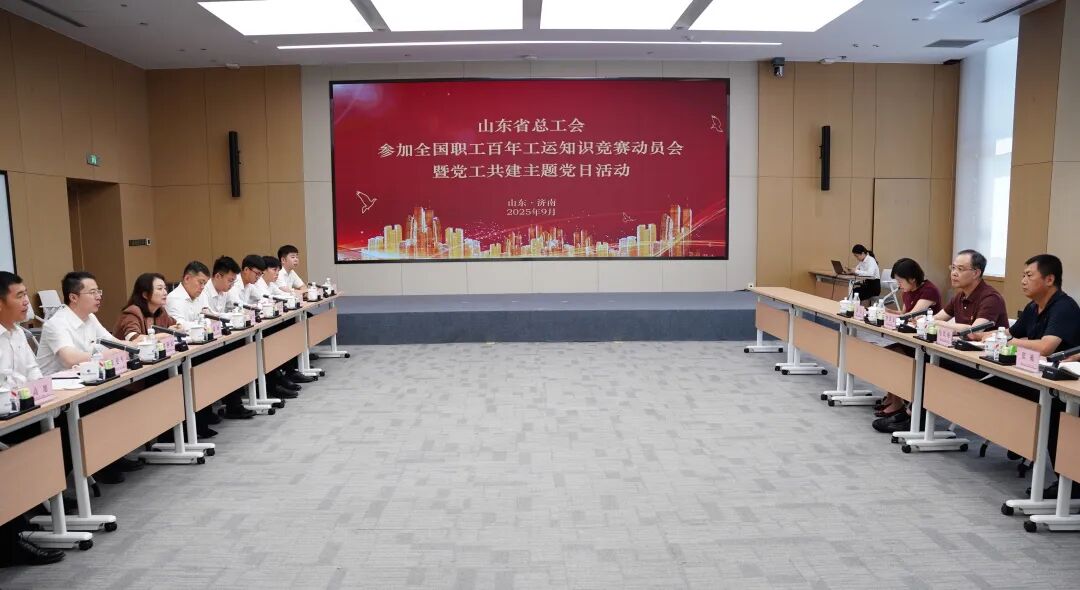 2025-09-03 山東總工會參加百年工運知識競賽動員會暨黨工共建主題黨日活動走進中建八一 9月2日,山東省總工會參加全國職工學習黨領導的百年工運知識競賽動員會暨黨工共建主題黨日活動在中建八局一公司工匠學院舉行。